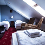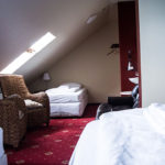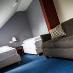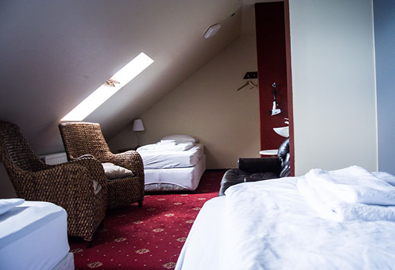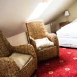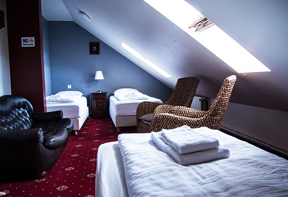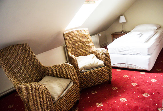 Rooms under the roof with two roofwindows, private sink and reading lights and seating facilities.
